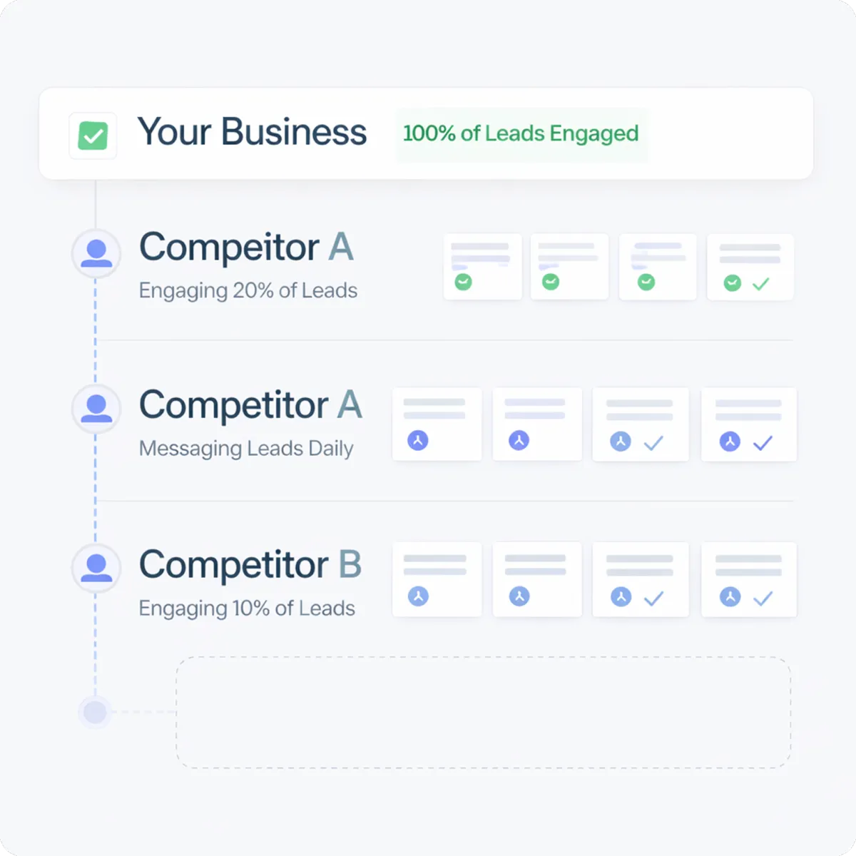 We only work with one business per location. If we're already working with a competitor in your area, we'll respectfully turn you away. The first step is making sure we're available in your market and that we're a good fit for each other.