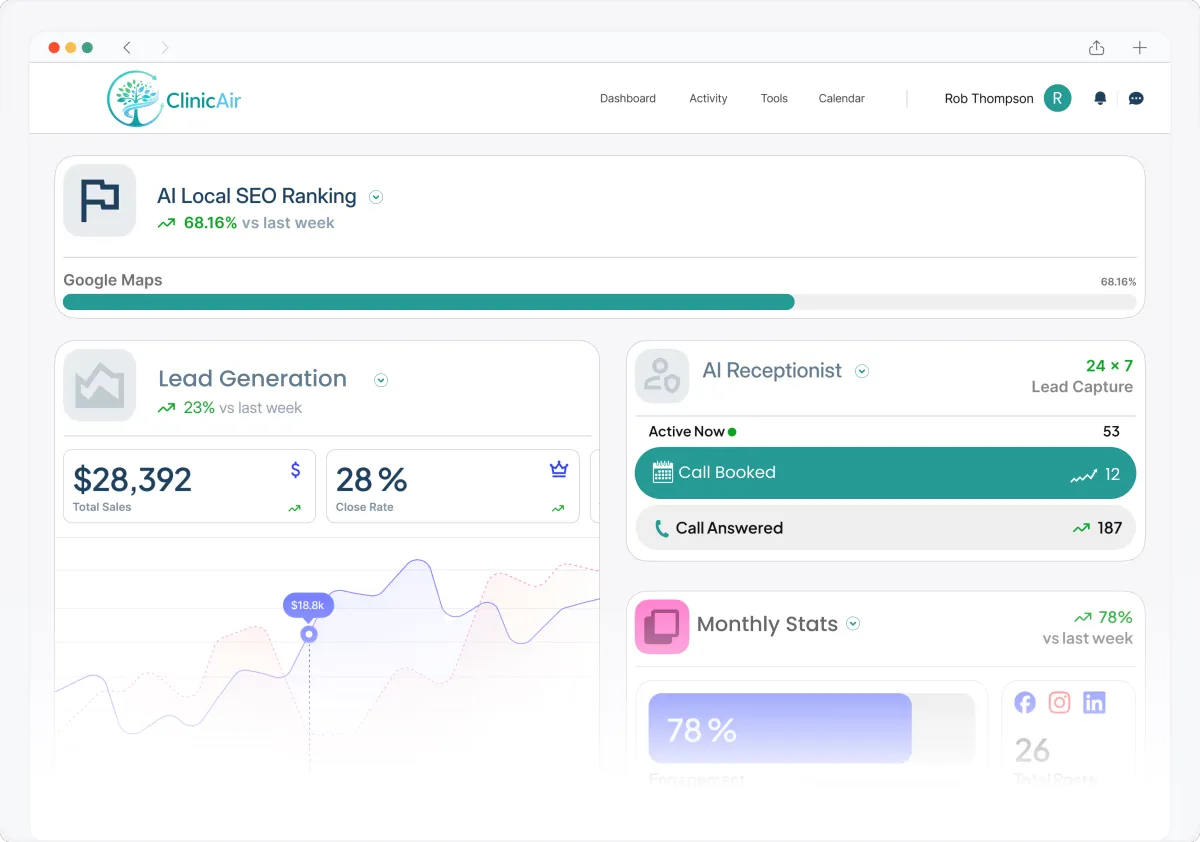 From appearing at the top of Google to converting calls into booked treatments, our solutions drive measurable growth.